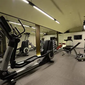 C'è un centro fitness con una vasta gamma di attività sportive.